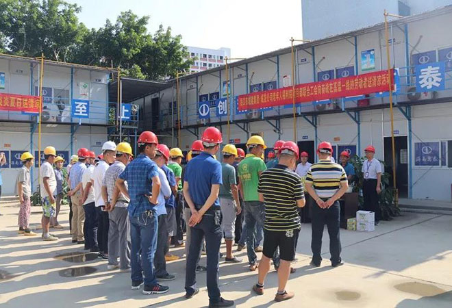 2019年4月24日上午9時(shí),為了體現(xiàn)對(duì)項(xiàng)目工地施工工人的人文關(guān)懷,切實(shí)保障高溫天氣下廣大一線員工的身體健康和生命安全,促進(jìn)項(xiàng)目快速推進(jìn)。在海口市城建集團(tuán)、城發(fā)公司的帶領(lǐng)下,我司工會(huì)在海口市老年人福利院項(xiàng)目開展抗高溫、戰(zhàn)酷暑、送清涼的慰問活動(dòng)。