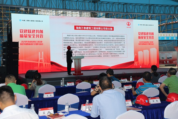 為了進(jìn)一步加強(qiáng)黨建聯(lián)系點(diǎn)的溝通交流,繼續(xù)深入推進(jìn)黨建聯(lián)創(chuàng)共建工作,鞏固抓黨建促工程質(zhì)量安全水平提升的成效。9月25日上午,2020年海南省建設(shè)工程黨建聯(lián)建共創(chuàng)暨質(zhì)量安全觀(guān)摩交流會(huì)在南光·西海灣項(xiàng)目部舉行。省住建廳機(jī)關(guān)黨委專(zhuān)職副書(shū)記劉志偉、省質(zhì)安局陳雷書(shū)記、省質(zhì)安局副局長(zhǎng)劉長(zhǎng)征、市質(zhì)安站站長(zhǎng)符志明及各黨建聯(lián)創(chuàng)共建企業(yè)黨支部、新聞媒體等單位參加了此次活動(dòng)。海南萬(wàn)泰公司黨支部作為省住建系統(tǒng)黨建聯(lián)系點(diǎn)參加了會(huì)議,并做了黨建工作經(jīng)驗(yàn)交流發(fā)言。