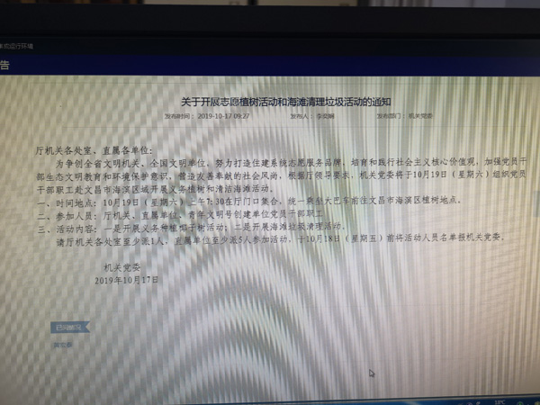 為爭創(chuàng)全省文明機(jī)關(guān)、全國文明單位,努力打造住建系統(tǒng)志愿服務(wù)品牌,培育和踐行社會(huì)主義核心價(jià)值觀,加強(qiáng)黨員干部生態(tài)文明教育和環(huán)境保護(hù)意識(shí),營造友善奉獻(xiàn)的社會(huì)風(fēng)尚,2019年10月19日上午,海南萬泰公司黨支部組織黨員參加省機(jī)關(guān)發(fā)起的志愿植樹和清理海灘垃圾環(huán)保活動(dòng)。廳機(jī)關(guān)、直屬單位、青年文明號(hào)創(chuàng)建單位黨員干部共50余人參加活動(dòng)。