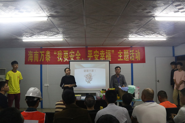 為了發揮互動作用,進一步加深工人對安全知識的理解和掌握,會上,宣講人員邀請工人參與現場安全知識答題,并為參與答題的工人送上禮品,整場專題會氣氛活躍,效果顯著。