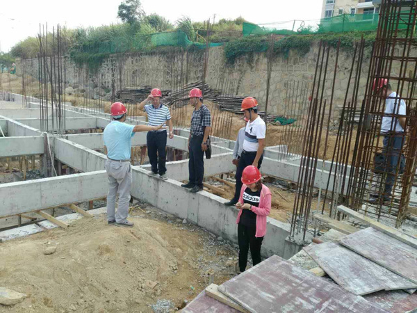 評審小組首先聽取了萬泰公司對瓊中縣加釵農場加鑫商業廣場項目評審材料的匯報,并對相關問題進行了詳細的詢問和了解。隨后,評審小組在萬泰公司相關人員的陪同下,實地查看了項目工地的相關情況,對工地文明施工、安全防護、現場資料進行了認真的檢查,同時陪同檢查的萬泰相關人員也為評審專家組詳細介紹了施工現場情況。?