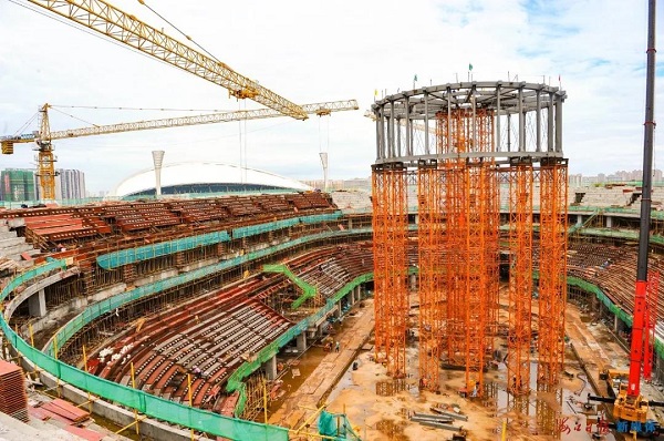 “目前項目鋼屋蓋中心環已吊裝就位并焊接完成,標志著鋼屋蓋將進入快速施工階段?!?月5日上午,在海口五源河體育館項目施工現場,只見體育館中心的鋼屋蓋中心環已現雛形。該項目土建主管陳顯島介紹,該項目預計將在今年底完成鋼屋蓋桁架的安裝與調試。截至目前,項目總進度已超過50%,預計明年12月底可交付使用。