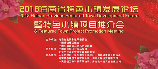 2018年12月2日,為貫徹黨中央、國務院關于推進小城鎮建設的精神和習近平總書記在慶祝海南建省辦經濟特區30周年大會上關于“發展鄉村旅游,打造一批體現熱帶風情的精品小鎮”的重要講話精神,促進特色小鎮和特色小城鎮的建設發展和少數民族文化保護,落實國家發展改革委先后印發的《關于加快美麗特色小(城)鎮建設的指導意見》《關于規范推進特色小鎮和特色小城鎮建設的若干意見》《關于建立特色小鎮和特色小城鎮高質量發展機制的通知》的要求,進一步規范特色小鎮建設,推動特色小鎮高質量發展,由海南省發展與改革發展委員會、中國城鎮化促進會、中國少數民族文化藝術促進會發起主辦,由中國民族經濟開發總公司、北京中民基業投資管理有限公司承辦的2018海南省特色小鎮發展論壇暨特色小鎮項目推介會,在位于海南海口的中國(海南)改革發展研究院會議廳成功舉行。