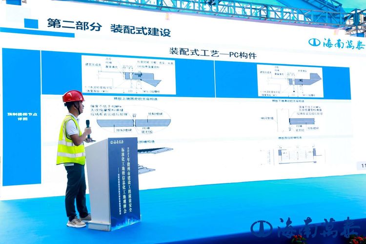 碧桂園儋州片區負責人牛孝峰分享了建設工程質量安全標準化暨裝配式建造工藝,并代表碧桂園海南區域表態,定將做好裝配式建造推廣工作,大力提升發展裝配式項目的質量和效益,為海南自貿港建設扛起我們的責任擔當。