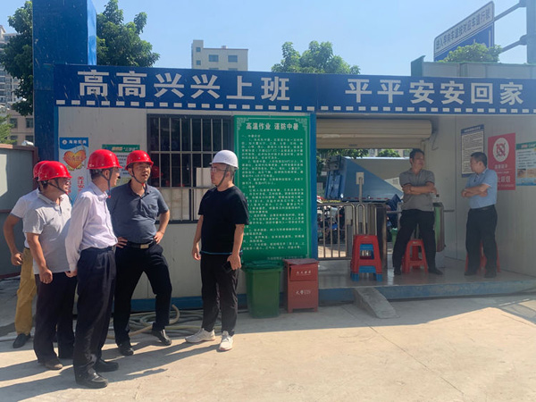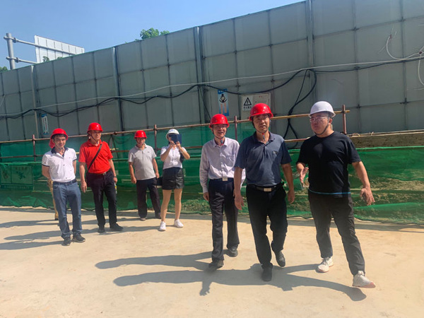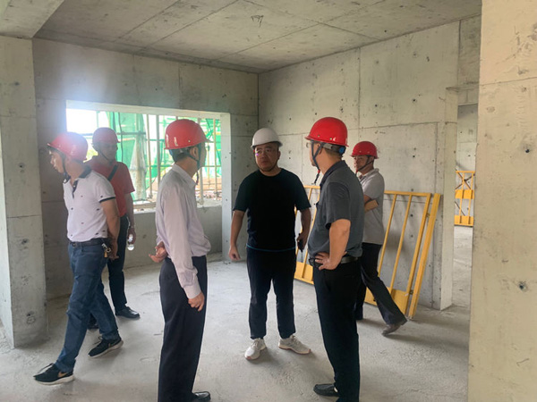 “國檢”檢查組的工作人員在張小龍總經理的帶領下在博大·錦繡濱江工地進行實地檢查。