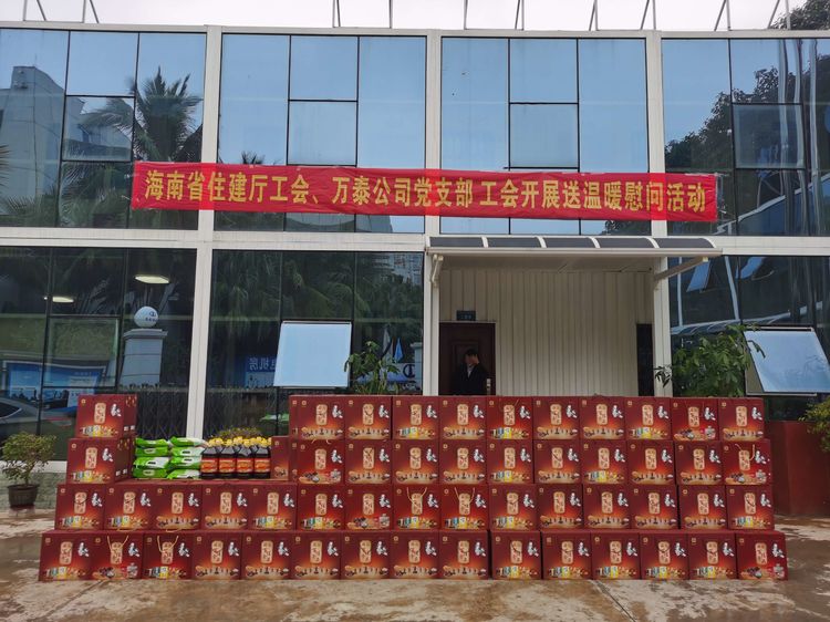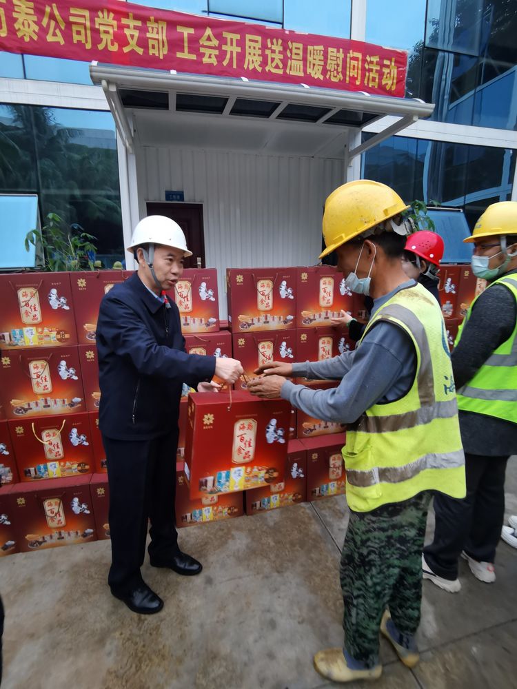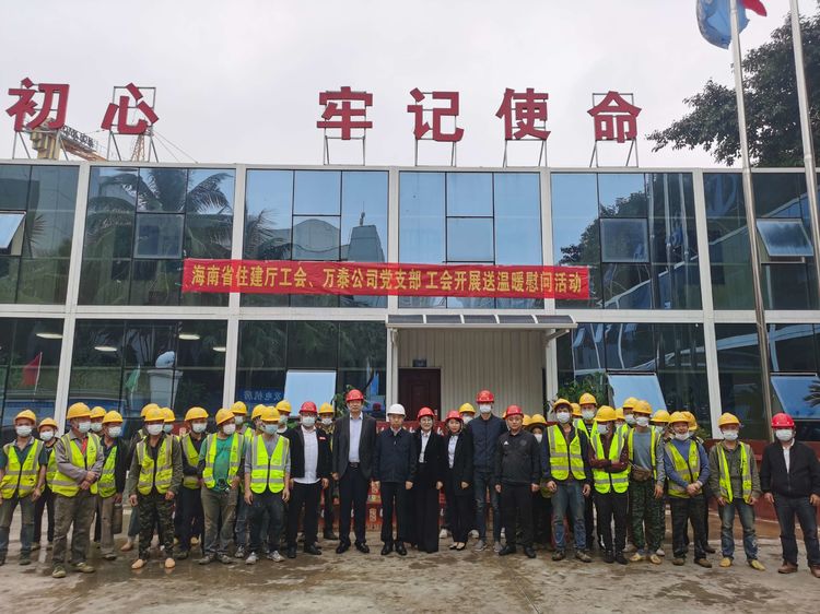 新春送溫暖,真情暖人心。2022年1月11日,在新春佳節即將來臨之際,省建設工會,海南萬泰公司黨支部、工會赴省政務中心二期項目開展新春慰問一線工人送溫暖活動,為一線工人送去油米、年貨等暖心物資。省建設工會常務副主席劉志偉、辦公室主任黃符杰,萬泰公司常務副總、工會主席顏利,黨支部書記孟晨,工會副主席林慧等有關人員參加本次活動。