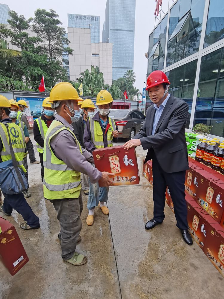 劉志偉副主席在講話中表達了對節前仍奮戰在崗位一線的工友們的感謝之情,他強調,保障好職工的權益是工會組織的重要任務,工會組織要始終把企業職工的生活冷暖放在心上,想職工所想,急職工所急,盡最大努力為他們辦實事、解難事,解決他們在生活中遇到的實際困難,不斷增強職工的幸福感和獲得感。同時,他也希望廣大工友們都能夠在海南自貿港的大背景下努力奮斗,盡職盡責,共同為這片廣闊的土地添磚加瓦,打造優質工程,描繪宏偉藍圖。
