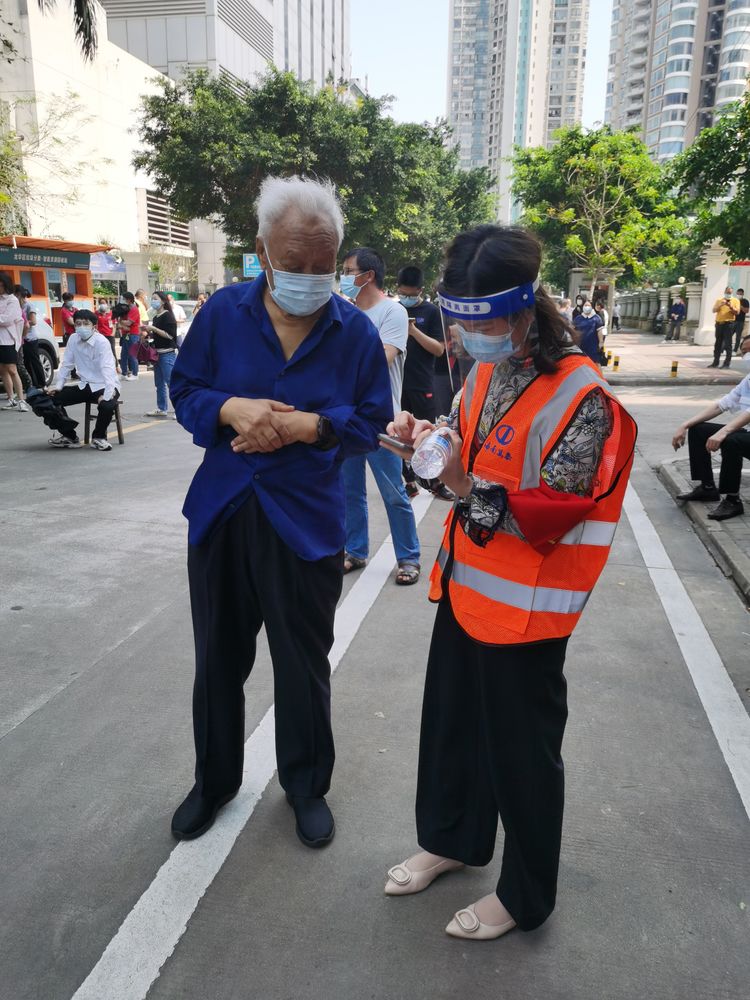 不忘初心,肩負擔當。4月6日,龍華區政府進行了主城區全員核酸檢測工作,在公司常務副總顏利的帶領下,公司員工分批次,有秩序, 有組織地奔赴金貿街道轄區內的置地花園、電力村、海口灣、百方廣場等區域核酸檢測點,協助開展核酸檢測工作,做好現場秩序維護。“請大家間隔1米排好隊”“請戴好口罩,提前打開健康碼”……從中午到晚上9時,海南萬泰公司的員工堅守崗位盡職盡責,維護好核酸檢測人員隊伍秩序,耐心解答群眾的疑問,安撫焦急等待的心情,幫助群眾操作健康碼,引導老人、孕婦優先檢測,充分彰顯了無私奉獻的志愿精神。