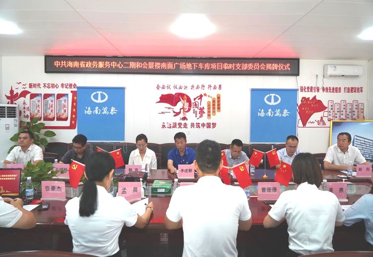 為進一步提高黨組織在基層的影響力,增強黨組織在項目工地上的凝聚力,貫徹落實“項目建在哪,支部就設在哪”的理念,經海南省住建行業黨委的批準,2022年6月24日,萬泰公司承建的省政務服務中心二期和會展樓南面廣場地下車庫項目臨時黨支部揭牌儀式暨為一線工人送“清涼”活動在項目部現場圓滿舉辦。受海南省住建廳領導的委托,省住建行業黨委專職副書記李述朝、省住建廳質安處副處長韓苗、省質安局副書記劉長征蒞臨現場指導揭牌儀式并參加為一線工人送“清涼”活動。公司黨支部書記曹珊珊、常務副總經理顏利、副總經理吳坤芳,項目臨時黨支部書記吳燕等相關人員參加了本次活動,儀式由公司黨支部副書記孟晨主持。