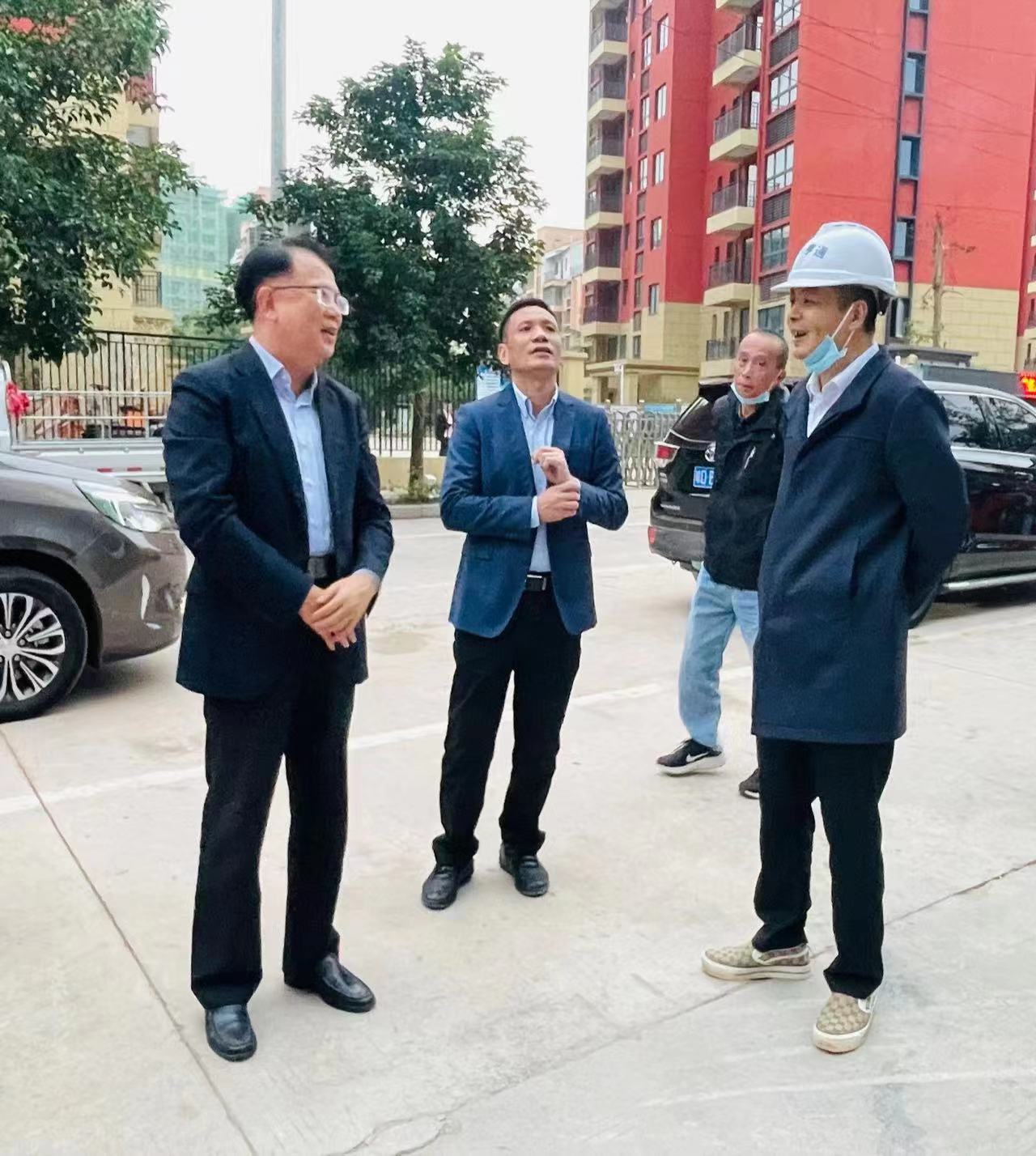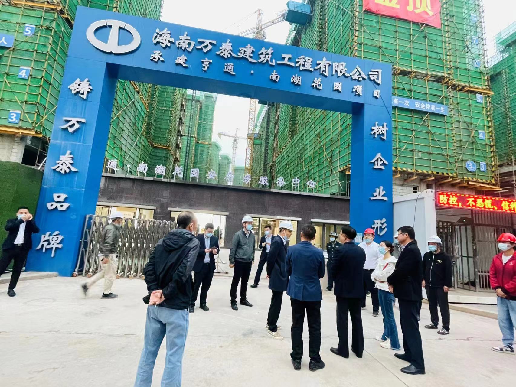 2022年12月8日,省住建廳廳長王鵬及相關處室負責人等一行在白沙縣縣長黃聰的帶領下到由海南萬泰承建的亨通·南湖花園項目開展檢查指導工作,白沙亨通房地產開發有限公司董事長、萬泰公司有關領導等一行參加本次檢查指導活動。