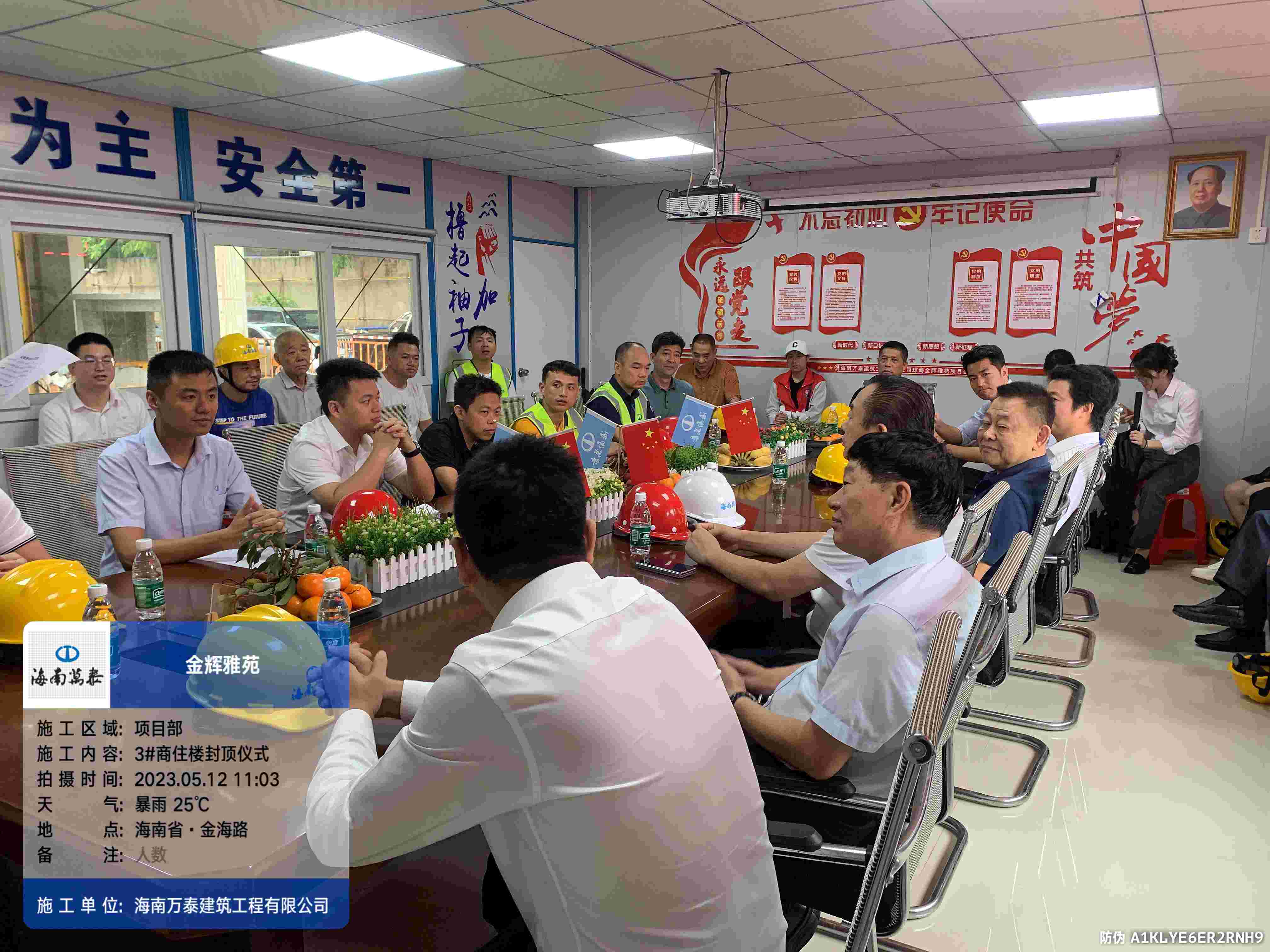 金梁拔地千年固,玉柱擎天萬事興。2023年5月12日上午,海南萬泰承建的瓊海金輝雅苑項目喜封金頂,封頂儀式在項目工地現(xiàn)場圓滿舉辦,海南輝景房地產(chǎn)開發(fā)有限責(zé)任公司董事長劉輝、股東文靖杰、總經(jīng)理陳小勇,海南萬泰建筑工程有限公司常務(wù)副總經(jīng)理顏利、工程一處總助袁軍、工程部副部長張豪杰、項目經(jīng)理劉達濱以及監(jiān)理等參與和支持項目建設(shè)的各級領(lǐng)導(dǎo)出席了本次活動,共同見證這一喜慶時刻。