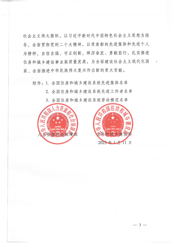 此次通報表揚,是繼公司去年年底被中華人民共和國人力資源和社會保障部、中華人民共和國住房和城鄉建設部評為“全國住房和城鄉建設系統先進集體”以來又一次獲得省級以上相關部門的表揚與認可!