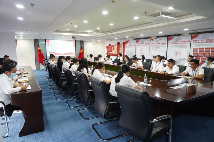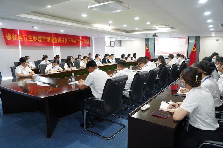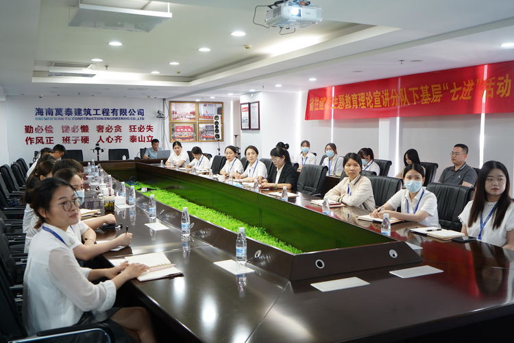 為深入學習黨的二十大精神,開展好學習貫徹習近平新時代中國特色社會主義思想主題教育,引導廣大黨員群眾深刻領悟“兩個確立”、增強“四個意識”、堅定“四個自信”、做到“兩個維護”,推動黨的二十大精神在基層走深走實,2023年5月25日,海南省住房和城鄉建設廳人事處二級調研員、行業黨委專職副書記李述朝,黨建指導員陳小娜走進海南萬泰公司開展學習貫徹習近平新時代中國特色社會主義思想主題教育理論宣講“七進”活動。萬泰公司黨員及員工近50人參加了本次宣講活動。