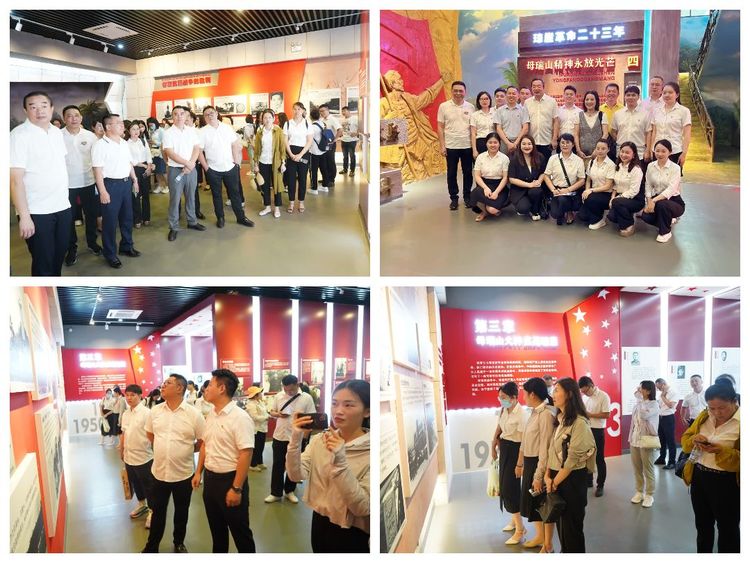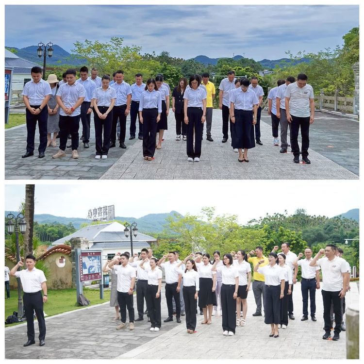 活動第一站來到了定安縣母瑞山革命根據地紀念園。大家首先參觀了革命歷史博物館,一張張革命的照片展現了母瑞山紅軍革命奮斗史,一件件無聲的遺物令人夢回曾經革命時代。通過認真聆聽博物館講解員的娓娓道來,生動形象的講述,大家深入了解了母瑞山革命根據地的發展歷程,這個地方曾在瓊崖人民堅持武裝斗爭二十三年紅旗不倒光輝歷程中起到了舉足輕重的作用,凝結著“崇高理想、堅定信念,勇于獻身,相信群眾、依靠群眾,自力更生、艱苦奮斗”的母瑞山精神,對那段艱苦卓絕的歲月有了新的認識和領悟。隨后,黨員們懷著對革命烈士崇敬的心情,在王文明、馮白駒的銅像前為革命先輩默哀一分鐘和三鞠躬,并重溫了入黨誓詞。