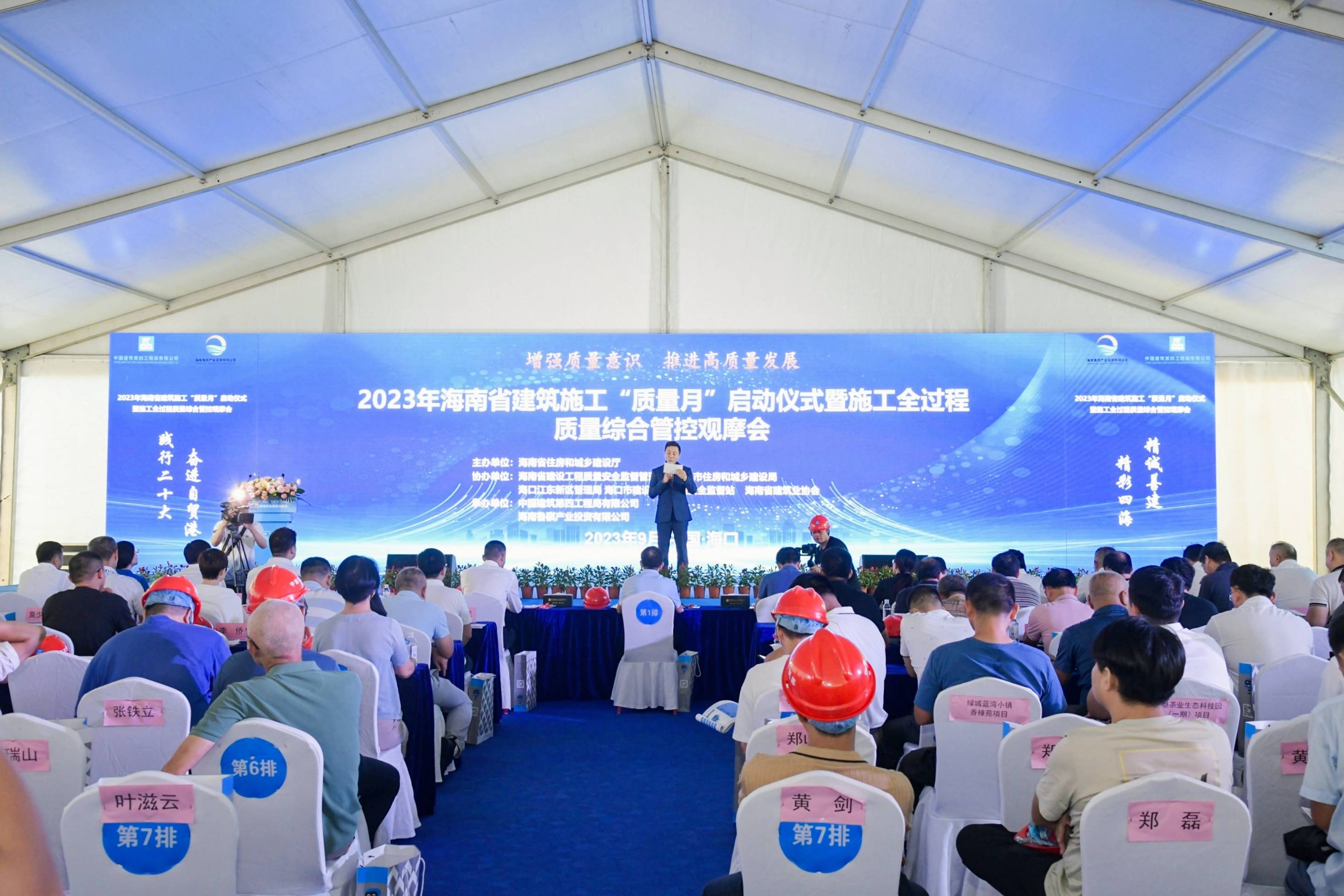 2023年9月13日,海南省住建廳舉辦了2023年海南省建筑施工“質量月”啟動儀式暨施工全過程質量綜合管控觀摩會。海南萬泰建筑工程有限公司作為榮獲2022-2023年度海南省建設工程“綠島杯”獎的8家企業代表之一上臺接受省住建廳副廳長林詩輝、省質安局局長蔡和林、??谑匈|監站站長符志明、省住建廳質安處副處長韓苗等領導的頒獎,萬泰公司工程部副部長張豪杰代表公司上臺領獎。