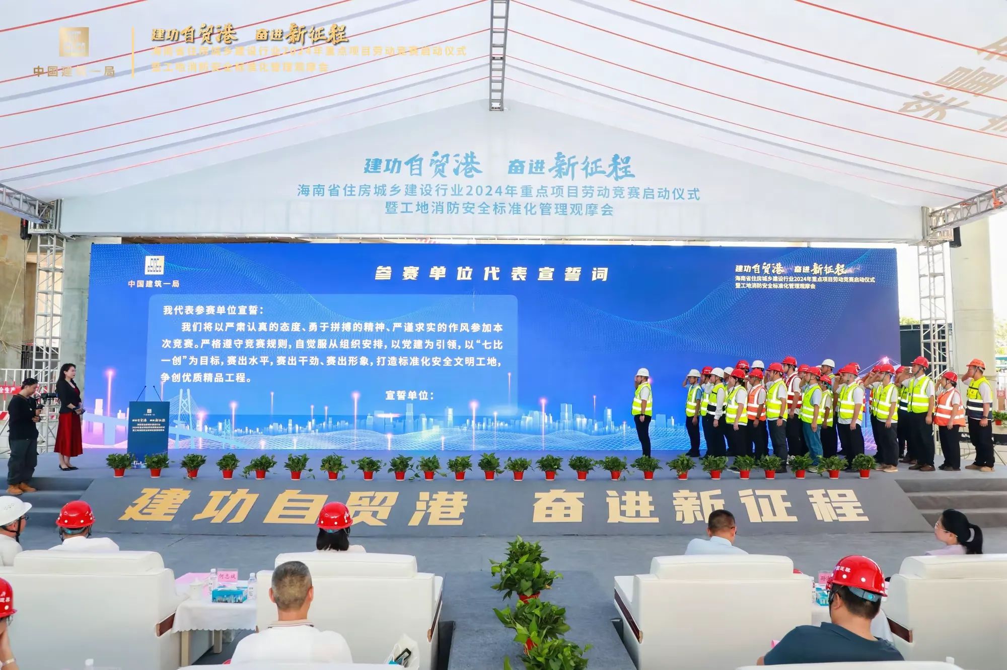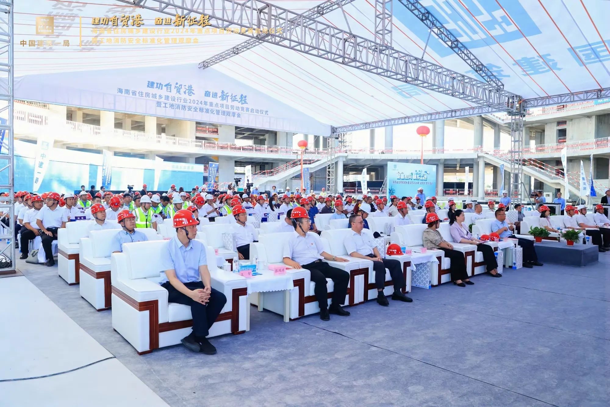 為深入學(xué)習(xí)貫徹習(xí)近平新時代中國特色社會主義思想和黨的二十大精神,貫徹落實習(xí)近平總書記關(guān)于工人階級和工會工作的重要論述,大力弘揚勞模精神、勞動精神、工匠精神。2024年7月10日,由海南省住房和城鄉(xiāng)建設(shè)廳、海南省總工會主辦,海南省農(nóng)林水利交通建設(shè)工會、海南省建設(shè)工會、中建一局承辦的“建功自貿(mào)港、奮進新征程”海南省住房城鄉(xiāng)建設(shè)行業(yè)2024年重點項目勞動競賽啟動儀式暨工地消防安全標(biāo)準(zhǔn)化管理觀摩會在海口國際免稅城項目工地啟動,省住建廳黨組成員、副廳長劉聯(lián)偉,省總工會黨組成員、副主席陳樺,省住建廳總工程師孫淑華等相關(guān)單位領(lǐng)導(dǎo)出席活動。海南萬泰公司黨支部、工會參加了本次活動。