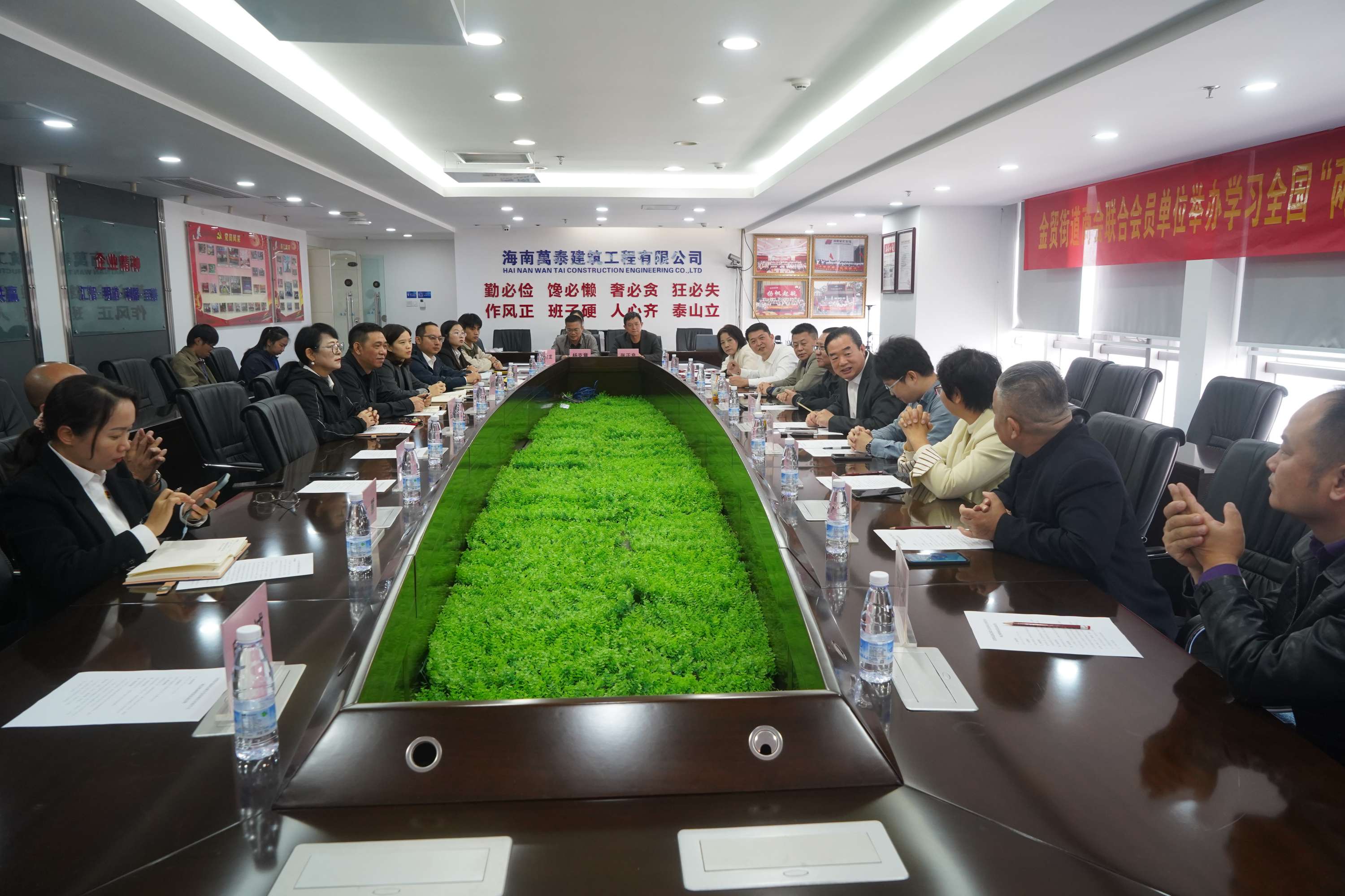 3月19日上午,海南萬泰公司聯合金貿街道商會組織開展了學習全國兩會精神座談活動。轄區金貿街道工委主任羅新建、武裝部部長余文龍,金貿街道商會會長、公司總經理顏利,海墾基建公司、??谑修r業產業協會等單位有關人員共同深入學習兩會精神,為企業發展和地方經濟建設注入新的動力。
