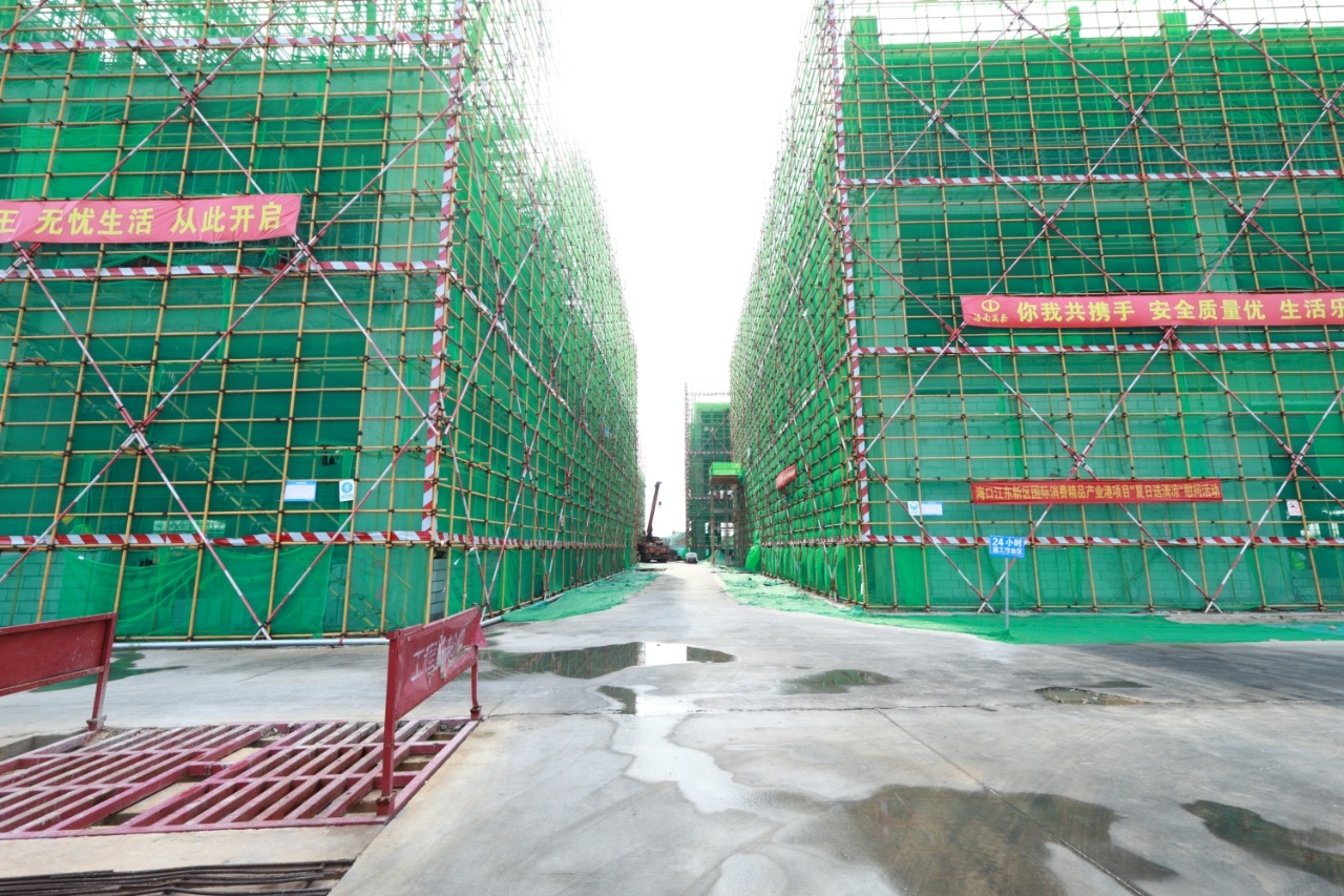 ??诮瓥|新區國際消費精品產業港項目坐落于海口市江東新區夏云路交興洋四橫路交匯處,總建筑面積23821.29㎡,總占地面積15927.36㎡。其中地上建筑面積為23821.29㎡,無地下室。由A#、B#、C#、D#樓4棟建筑組成,均為丙類多層廠房,是海南民企助力城市更新、踐行企業責任的重要項目。自啟動以來,便備受各界關注,其承載著推動區域經濟發展、打造消費精品產業集聚地的重要使命。