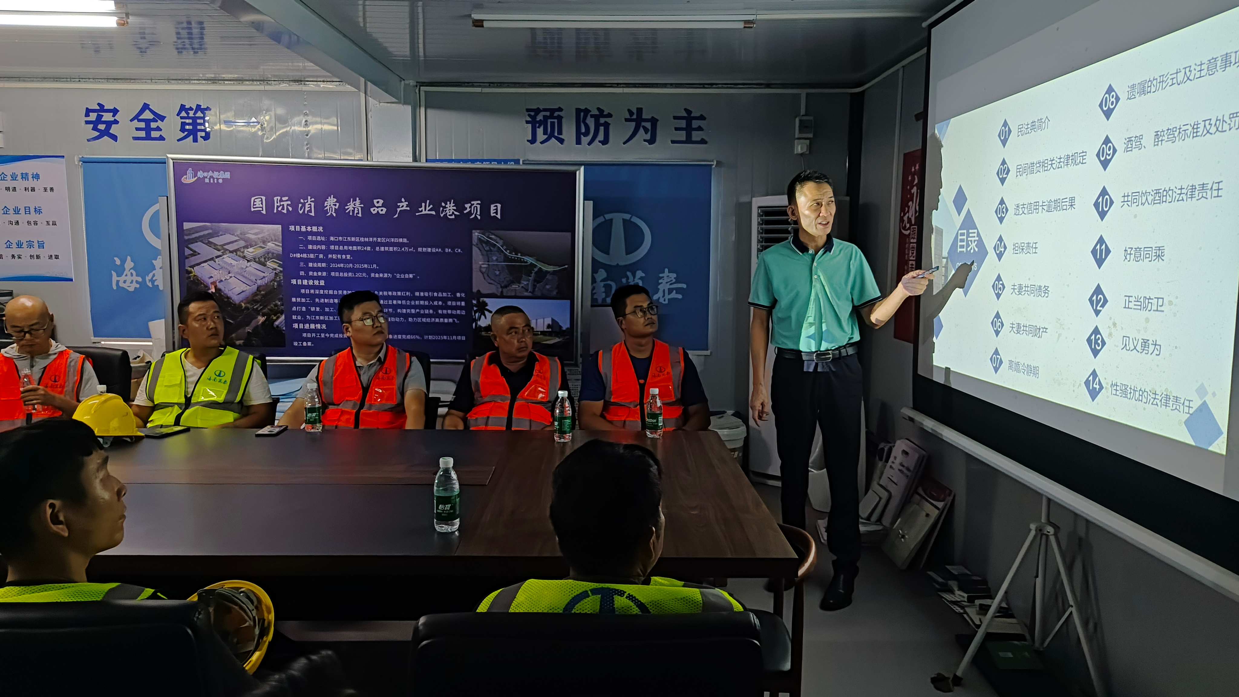 為進(jìn)一步做好普法宣傳工作,增強(qiáng)基層職工的維權(quán)意識,10月20日下午,由海南省建設(shè)工會(huì)主辦的“送法律講座進(jìn)企業(yè)進(jìn)工地”活動(dòng)走進(jìn)海南萬泰建筑工程有限公司承建的江東新區(qū)國際消費(fèi)精品產(chǎn)業(yè)港項(xiàng)目工地現(xiàn)場。近20名項(xiàng)目管理人員及工人代表參與此次普法課堂,活動(dòng)旨在強(qiáng)化基層職工法律意識與維權(quán)能力。