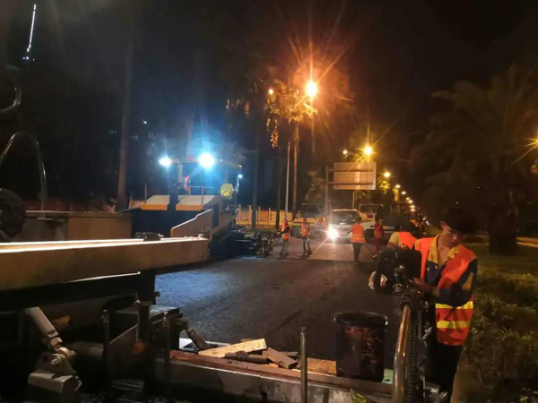 盡管迎賓路路面改造工程進展比較順利,但海南萬泰卻不敢有絲毫懈怠。項目負責人雷飛在接受采訪時表示,為了不影響居民正常出行,項目部合理規劃施工時間,晚上10點以后至次日凌晨6點為道路施工時間,避開市民出行高峰時段,盡量做到無感施工。項目部專門成立安全小組,在施工現場設置警示標志,盡最大可能降低施工活動對市民日常生活造成的影響。項目部所有參建人員全力奮戰在施工第一線,加班加點推進工程建設,按期完成建設任務。