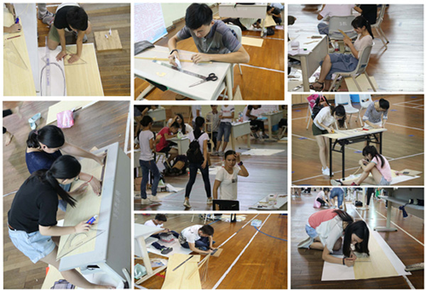 此次參賽的70支隊(duì)伍按照賽前抽簽順序分別進(jìn)行了加載測(cè)試。加載前,先由選手小心的將30公斤的鐵塊輕放在由竹皮、502膠水粘制而成的四層塔架上,塔架頂層還要放置4立升的水箱。參賽隊(duì)員就其模型的設(shè)計(jì)思路、傳力路徑、構(gòu)造特點(diǎn)及創(chuàng)新之處等方面做2分鐘陳述。參賽作品各具特色,構(gòu)思新穎,體現(xiàn)出了參賽隊(duì)員扎實(shí)的力學(xué)與結(jié)構(gòu)知識(shí)、活躍的思維、豐富的想象力及較強(qiáng)的創(chuàng)新意識(shí)。隨后,評(píng)委老師提問(wèn),參賽隊(duì)員答辯;提問(wèn)內(nèi)容多涉及基本力學(xué)及結(jié)構(gòu)概念、模型受力性能等。之后,進(jìn)行模型加載。加載共分三級(jí),加載的控制位移依次增大;加載級(jí)數(shù)的遞增不僅考驗(yàn)著模型的牢固性,更左右著參賽隊(duì)員和觀眾們的心情。整個(gè)環(huán)節(jié),工作人員各司其職,現(xiàn)場(chǎng)組織有條不紊,氣氛熱烈。