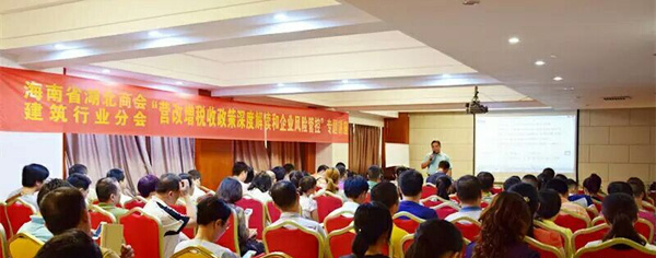 2016年4月16日,海南省湖北商會、海南省湖北商會建筑行業(yè)分會,聯(lián)合尤尼泰(海南)稅務(wù)師事務(wù)所在海口香江溫泉國際大酒店共同舉辦了“營改增稅收政策深度解讀和企業(yè)風(fēng)險管控”專題講座。海南萬泰建筑工程有限公司總經(jīng)理、海南省湖北商會建筑行業(yè)分會秘書長張小龍參加并主持了本期講座。