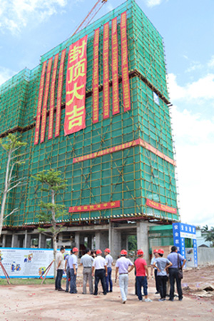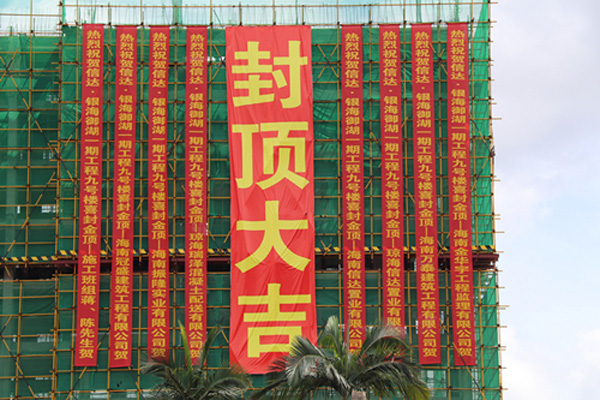 自今年二月份瓊海“信達(dá)?銀海御湖(一期)”項(xiàng)目開工以來,海南萬泰施工團(tuán)隊(duì)不畏艱辛,克服海南高溫多雨的氣候特點(diǎn),保質(zhì)、保量,緊張施工,嚴(yán)格把控項(xiàng)目的各個(gè)施工細(xì)節(jié),“信達(dá)?銀海御湖(一期)”項(xiàng)目9#樓率先完成主體封頂。