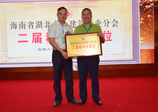 2016年9月24日下午4時,海南省湖北商會建筑行業分會換屆暨二屆一次會員大會在香江溫泉國際大酒店召開。海南省湖北商會是由在瓊的湖北企業自愿聯合發起成立、并經海南省民政廳核準登記的非營利性社會團體。建筑行業分會是其下屬的分支機構,以建筑施工總承包為主、涵蓋建筑設計、招投標、預決算、工程擔保、建筑勞務、工程監理等為建筑行業產業鏈的專業分會。
