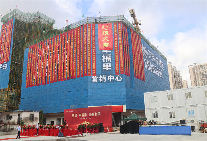 5月31日上午,三亞天澤·幸福里項目喜封金頂。特邀嘉賓海南省湖北商會常務副會長、秘書長胡衛東,公司總經理張小龍帶領工程管理團隊出席封頂儀式,與建設、監理、設計單位代表共同見證這一喜慶時刻。