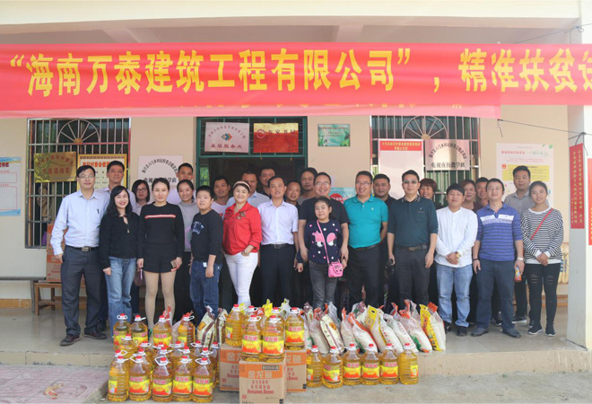 為積極響應國家“精準扶貧”政策,扛起企業責任,以實際行動回饋社會,同時,大力弘揚扶貧濟困的傳統美德,2017年12月9日,海南萬泰建筑工程有限公司總經理張小龍帶領公司各級領導及員工深入保亭黎族苗族自治縣六弓鄉田圮村,開展扶貧活動。