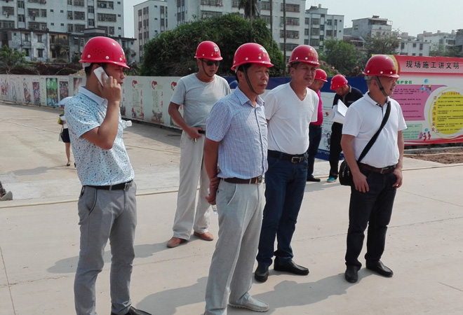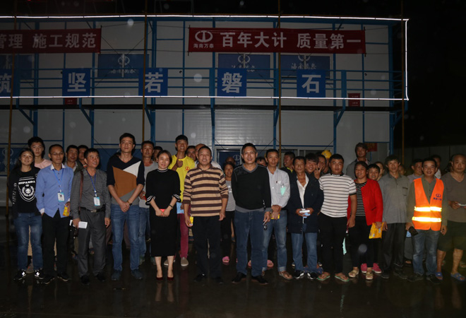 4月14日下午,萬泰公司總工程師鄒進安、工程部主任秦啟武帶領工程部、總工辦、辦公室部分員工到公司瓊海在建項目信達•銀海御湖工地現場檢查工作。項目部管理人員邱總、程總等陪同參加了本次季度質量安全檢查。