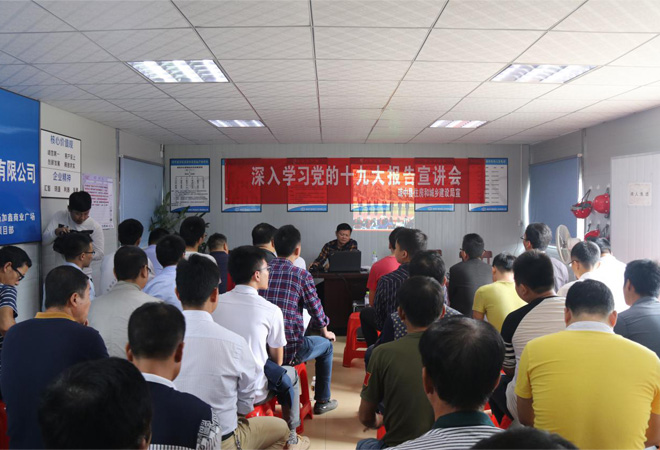 為深入貫徹落實十九大精神,將十九大精神全面、系統的傳達給一線工人,按照公司的總體要求和部署,繼11月25日成功舉行第一次十九大精神宣講會后,海南萬泰計劃將在各項目部以豐富多樣的形式貫徹落實十九大精神。